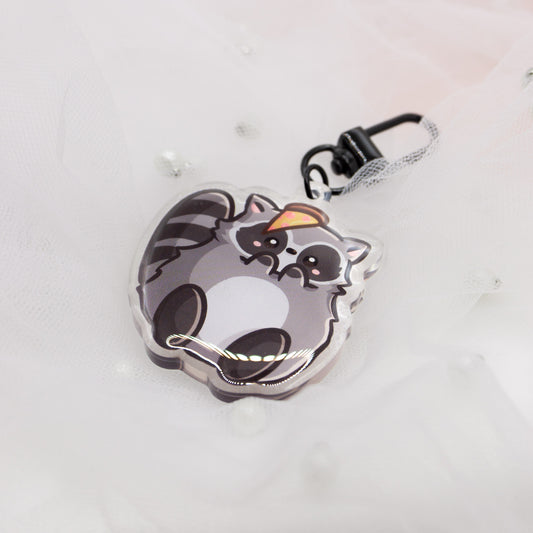 Kawaii raccoon with pizza keychain