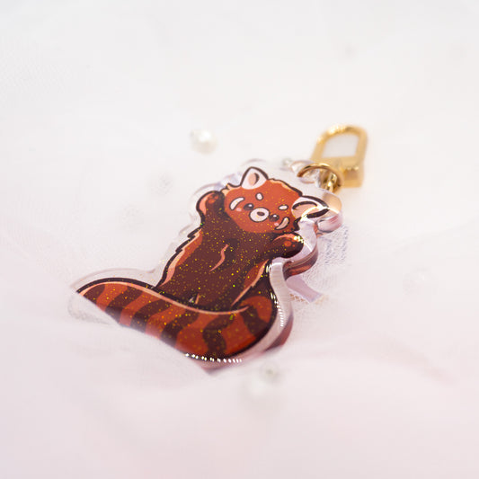 Cute Kawaii Standing Red Panda Glitter Keychain