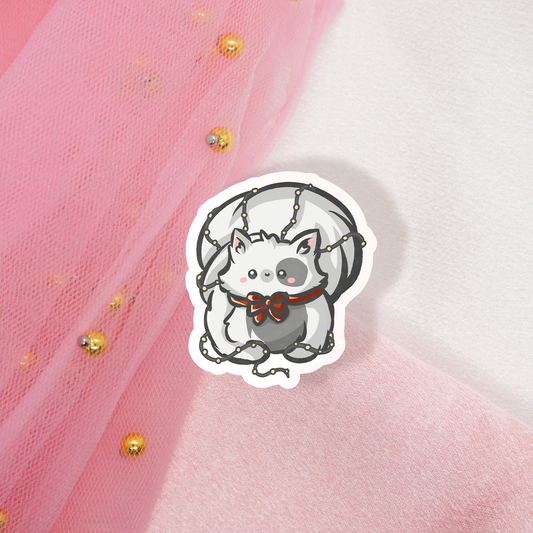 Cute Animal Sticker Raccoon with Christmas Pizza