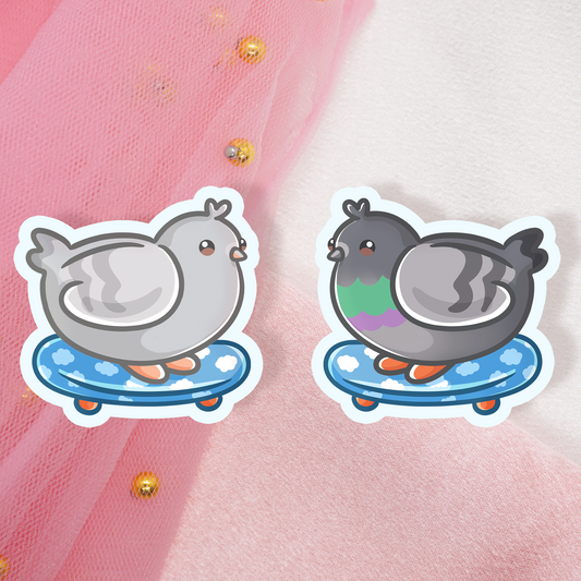 Cute Animal Sticker Pigeons with Magic Wand or Skateboard