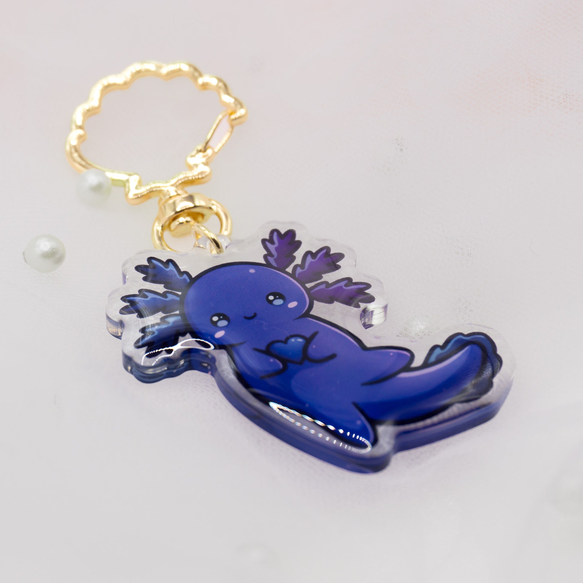 💗 Der Axolotl Acryl Schlüsselanhänger ist beidseitig bedruckt, besitzt eine Epoxy-Oberfläche und ist etwa 5 cm groß.